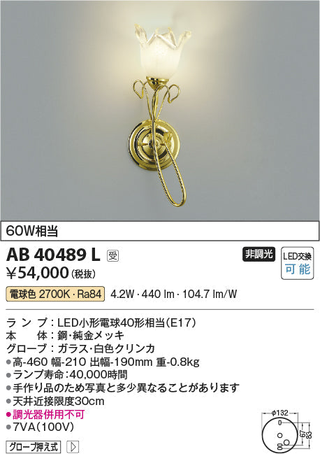 ●補足・注意事項: ◆消費電力:4.4W,◆色温度:2700K,◆演色性:Ra84,◆光源寿命:40,000時間,◆手作り品のため写真と多少異なることがあります,◆天井近接限度30cm,◆調光器併用不可,※色温度:2700K