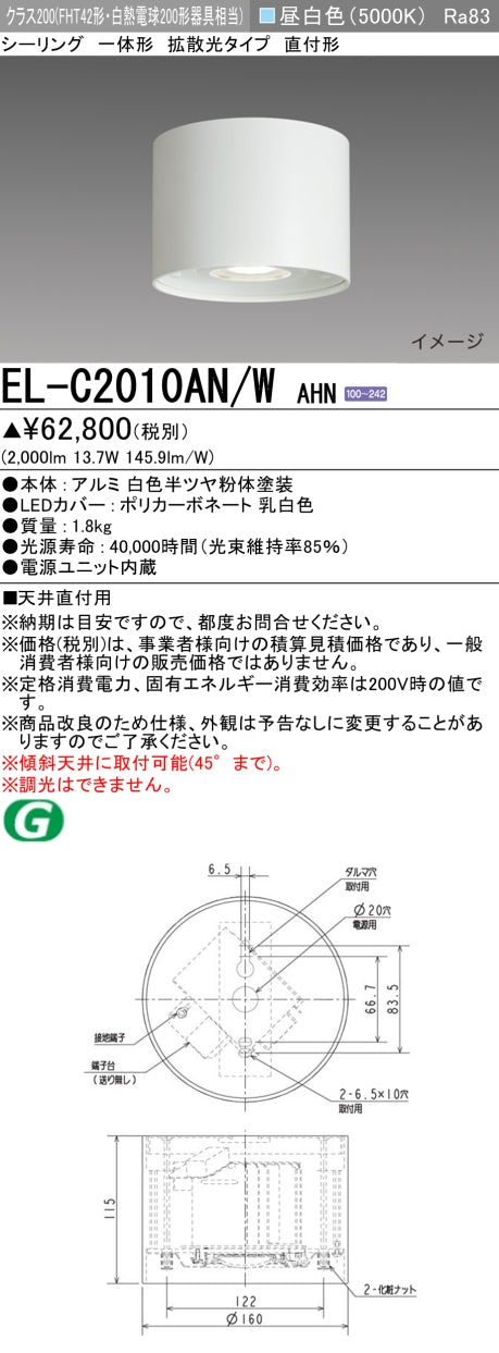 三菱電機 シーリングライト EL-C2010AN/W AHN