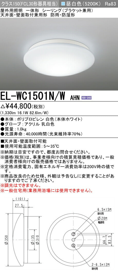 三菱電機 シーリングライト EL-WC1501N/W AHN