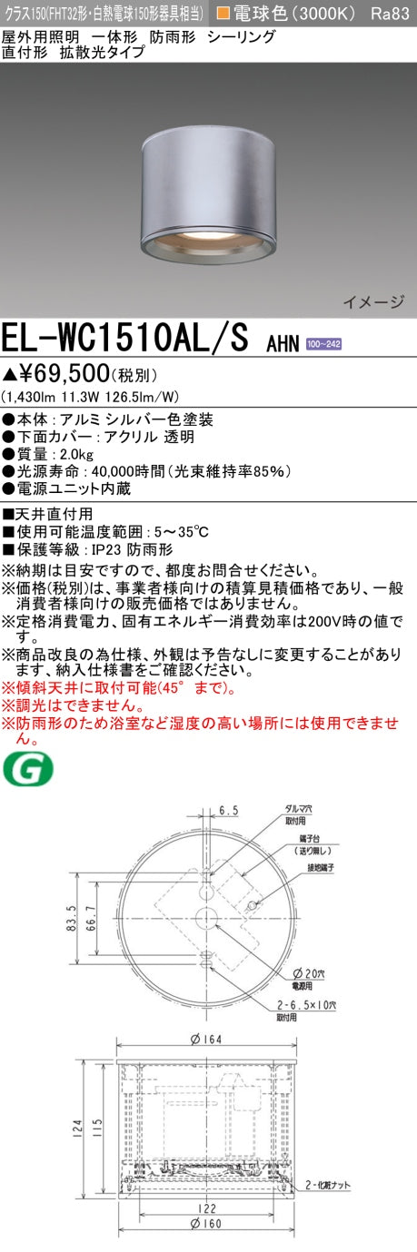 三菱電機 シーリングライト EL-WC1510AL/S AHN