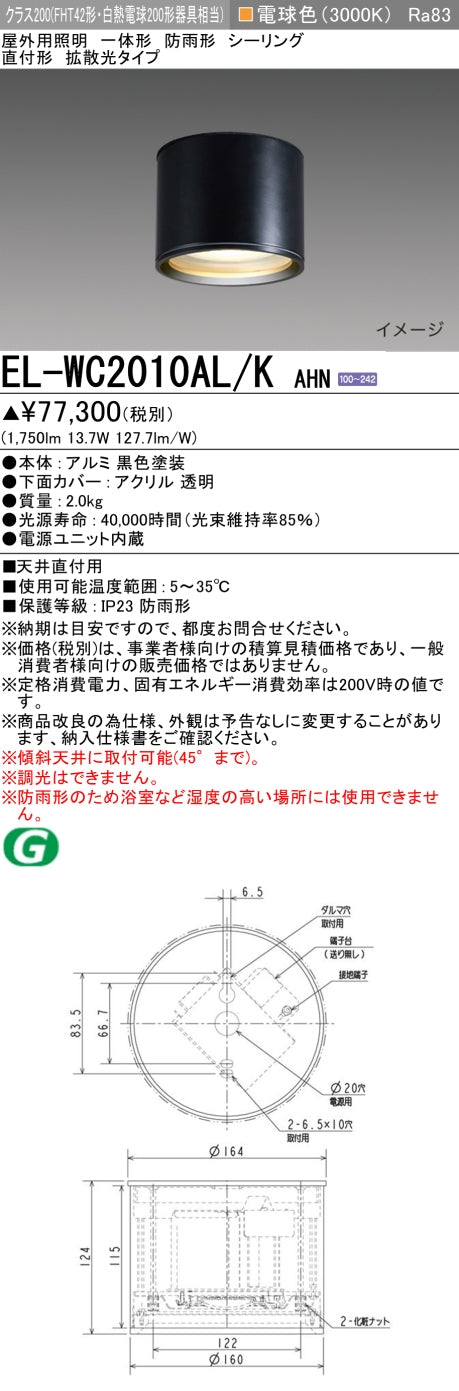 三菱電機 シーリングライト EL-WC2010AL/K AHN