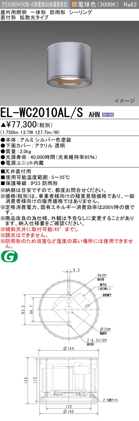 三菱電機 シーリングライト EL-WC2010AL/S AHN